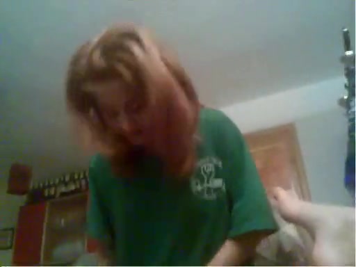 Horny girlfriend takes off her green t shirt and goes to suck him. After that she gets on top and they fuck in front of the camera.